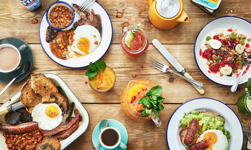 * Honest Brunch: smoked bacon, cumberland sausage, black pudding, fried egg, garlic mushrooms, bubble and squeak, honest beans and sourdough.