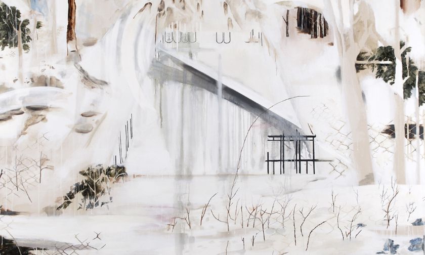 History and memory are the subject of a joint exhibition between Nogah Engler and Ori Gersht. The Ukrainian landscape around Kosov is a staple of Engler's landscapes. During WWII, this tranquil setting witnessed the unspeakable horror of Nazi death squads. The contrast between the dark deeds of the past and the bucolic beauty of the present shines through in Engler’s haunting paintings.