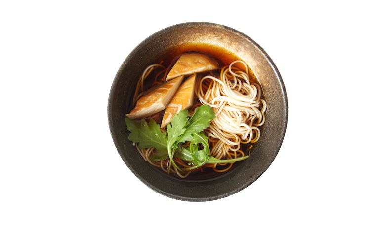 - cold Somen with smoked mackerel and wild rocket leaves