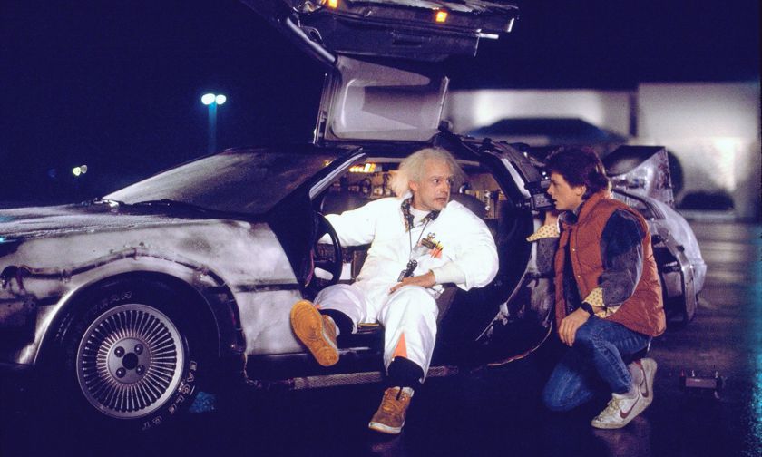 Marty makes pals with a mad scientist who’s invented a time machine out of a DeLorean because, hey, if you’re gonna travel in time, you might as well do it in style. McFly’s tasked with making sure his teenage parents (to be) meet and fall in love so he can indeed make it back to the future in time. Just trust the nutty doctor and all will turn out alright.