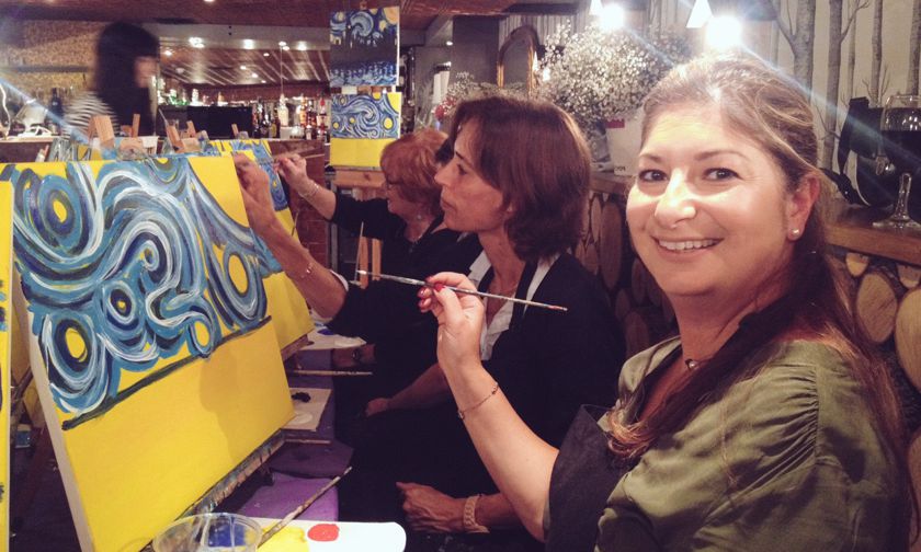 Ticket includes all art supplies and a glass of wine. Drinks are also available for purchase at the bar.