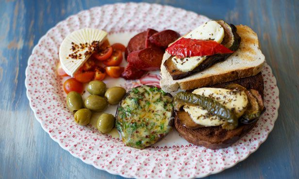 – fried goat’s cheese with roasted vegetables